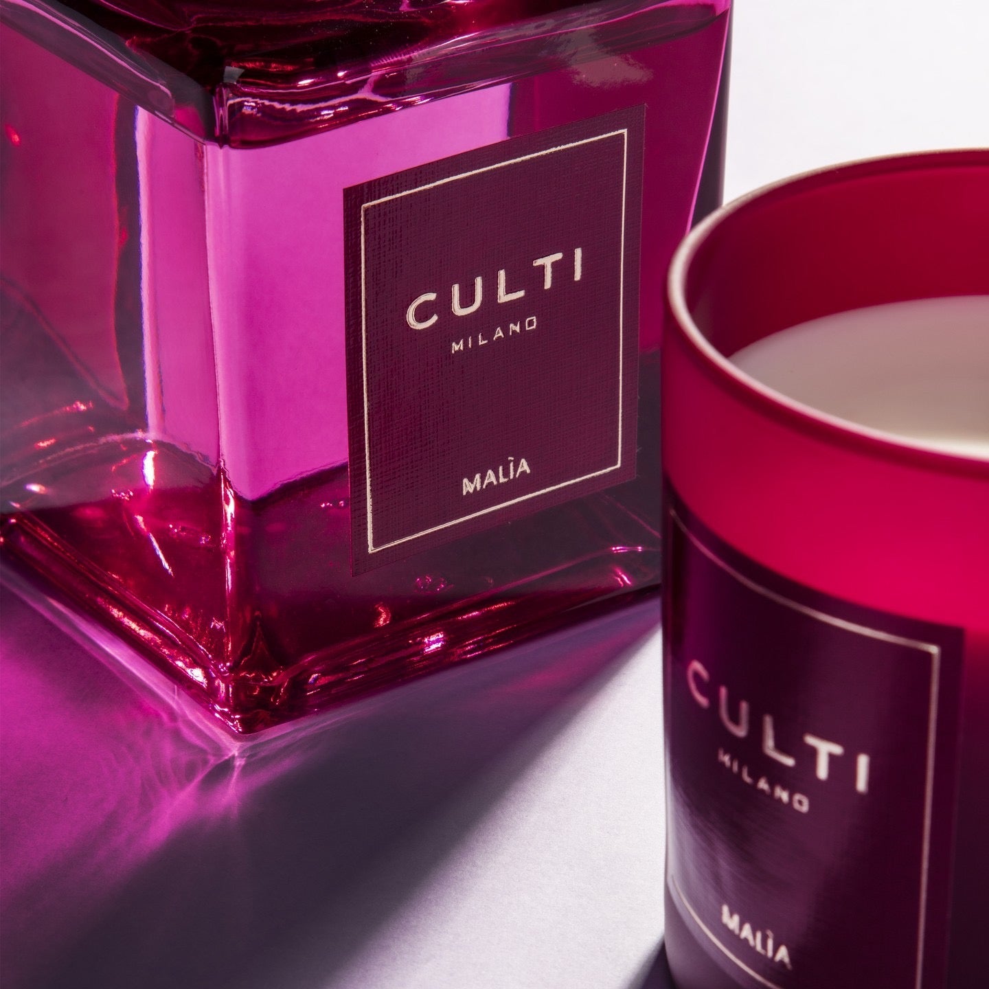 Malía is an enchantment, the new olfactory magic by CULTI MILANO: intriguing and sensual, it gives to spaces an atmosphere rich of irresistible fascination with its enveloping and unexpected notes. Malìa collection comes in 500ml and 2700ml Bulgarian red Décor diffusers and in the refined 270g candle.